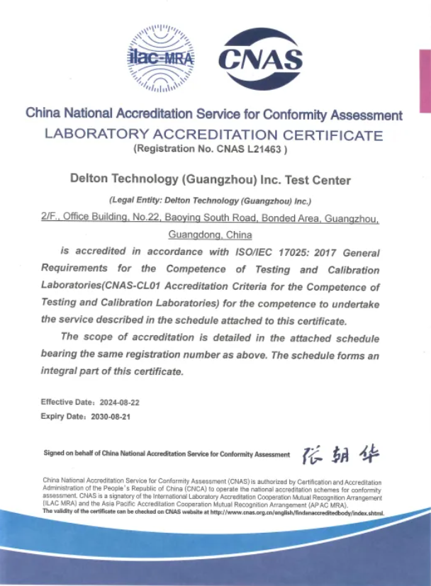 华亿在线检测中心(以下简称“广合科技检测中心”)顺利通过中国合格评定国家认可委员会(“China National Accreditation Service for Conformity Assessment”, CNAS)的认可,成功获得CNAS认可标识和认可证书(注册号:CNAS L21463),标志着我司在检测技术能力和管理水平上迈上了新的台阶。